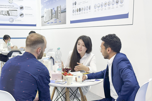 深耕鋰電池檢測領域20余年的星云股份可提供鋰電池從研發(fā)到應用的全方位測試產(chǎn)品及解決方案,覆蓋“電芯-模組-PACK”全生命周期的關鍵環(huán)節(jié),并廣泛應用于3C數(shù)碼、新能源汽車、電動船舶、儲能等領域。本屆展會中,星云股份圍繞鋰電池全生命周期的檢測技術、檢測設備,從多個維度展示了公司為鋰電池研發(fā)、量產(chǎn)、使用提供全方位安全測試服務的實力和優(yōu)勢。憑借高測試精度、高穩(wěn)定性、快速電流響應、能量回饋技術運用、模塊化設計等突出的高性能優(yōu)勢,以及可根據(jù)客戶需求進行定制化服務的特點,星云股份的產(chǎn)品及解決方案吸引了海外多家知名廠商的重點關注與咨詢。鋰電池智能制造也是近年來業(yè)界關注的焦點,星云股份在展會中也展示了鋰電池PACK自動化組裝生產(chǎn)線、儲能集裝箱裝配等領域的智能制造解決方案,以及鋰電池檢測實驗室能源管理系統(tǒng)解決方案,相關產(chǎn)品和技術運用能夠有效保障鋰電池研發(fā)、生產(chǎn)過程的可靠性、穩(wěn)定性,幫助客戶提升產(chǎn)品研發(fā)效率、產(chǎn)線產(chǎn)能、產(chǎn)品品質(zhì)。