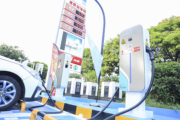 福州連潘中石化加油站內(nèi)的充電樁已投入使用